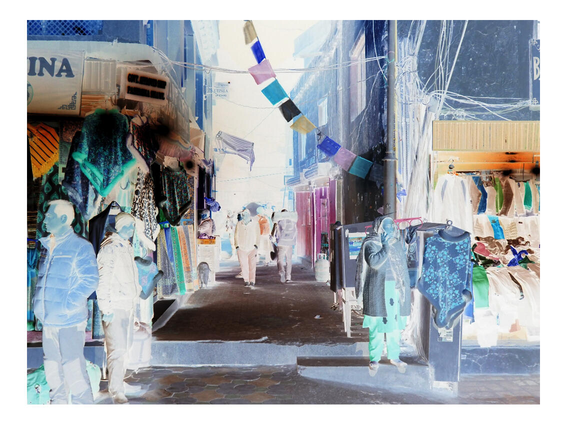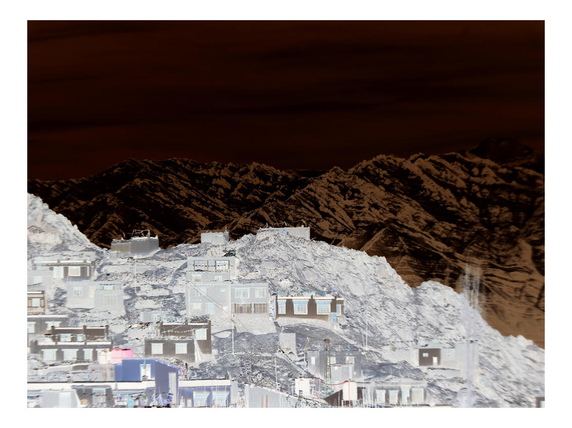 Villanások az Istenek földjéről - Varju Kata fotókiallitásaVarju Kata kiállításának címében két fogalom szerepel, amelyek fogódzót adhatnak nem hétköznapi képeinek megértéséhez: a „villanások” és az „istenek földje”.Nézzük az utóbbit: Tibetben járunk, az istenek földjén a képek által. Közelebbről Ladakban, a Himalája India felé eső részén, a Himalája és a Karakorum hegyláncok között, beékelődve India, Pakisztán és Kína közé. Pontosabban Kata járt ott, ő használta a fényképezőgépét azon a helyszínen. Ezt a vidéket Kis-Tibetnek vagy Nyugat-Tibetnek is szokták nevezni. Fővárosa, s a képen megjelenő utcák, terek, sikátorok helyszíne is, a 3600 méter magasságban működő ősi város, Leh. Szélsőséges elhelyezkedése miatt a város viszonylagos nyugalmat és elszigeteltséget élvez, bár kapuit a turizmus ipar kitartóan rázogatja. Szerencséje, hogy magasan fekszik, s hogy évszázadokkal korában rögzült életformája nem kedvez a turizmus instant megoldásokat, kényelmet szerető tömegeinek.A másik fogalom, a villanások. Ezek kapcsán csakhamar a képhez érünk. A vakuvillanással, a pillanatra feltáruló blendén beszakadó fény villanásával, az életünket mind több és több érzékcsaló káprázattal bombázó pillantnyi képhatás villanásaival asszociál. Varju Kata legfontosabb állításához jutunk, melyet magánbeszélgetés során szavakkal, vagy ami a legfontosabb, most kiállított képeivel fogalmaz meg. A különös színvilágú, első ránézésre nehezen értelmezhető képek, negatívok nagyításaival. Amit kapunk, a dolgok visszája. Legalább is, mostanáig így gondolhattuk.Csakhogy közben történt pár fontos dolog a művészet egyik legfiatalabb ágazatában, a még csak 150 éves fotóban. Kata munkáinak megértéséhez muszáj egy kis kitérőt tennünk. Ugyanis ez a változás nemcsak a képet, de egész civilizációnkat átrendezi.A különféle közösségi platformok működési modelljei szerint az emberiség ma már inkább képekkel mesél, képeken keresztül beszél, semmint elvont és sokszorosan összetett üzenetű mondatokkal, ahogy most én. A facebook a valaha még könyveken cseperedett boomerek unalmas és nehézkes platformja. Tele szöveggel, amik gyakran a képernyő felületén is képesek túl lógni, fárasztó scrollozásra, vagy épp a poszt azonnali elhagyására késztetve a korszerűen rohanó infófogyasztót. Ellenben hasít az Insta, ahol a Gutenberg-civilizáció évszázadai után végre megint a kép beszél, és pörög a Tik-Tok is, ami mini filmecskék, soha fel nem fogható rövidségűre vágott mozgóképi szekvenciák elmúlaszthatatlan éhséget keltő villanásai révén ébresztenek ingert, vágyat, vonzást, azonosulást.Ez az érzékileg felfokozott kor már nem ismeri a rettegésnek azt az atavisztikus minőségét, amit a firenzei keresztelőkápolna Coppo di Marcovaldo készítette mozaikképének embereket faló ördögalakja okozott, sem az undort, amit reneszánsz traktátusszerzők írtak le a még a legyeket is megtévesztő valószerűségű Giotto festmények kapcsán. Azokat a képeket a néző tetszőleges ideig pásztázta a szemével, mindig újra és újraélte a kép keltette erős ingert, s elfogta a szorongó félelem valahányszor a pokol ördögére nézett. Lényeg, hogy maga döntött, hogy a hatás mennyi ideig tart, s ő élesztette újra, ha képfaló szenvedélye ismét a szorongás átélésére sarkalta. A fantáziája dolgozott, nem a kép gyarmatosította a befogadó elmét. Ennek a fajta képnek, a lenini és goebbelsi propagandakép használat után, pár évtizede vége. Amit viszont most élünk, már a nagybetűs KÉP halála. Ahogy szöveget, úgy képet sem olvas, ért, értelmez senki, a képeket esszük, habzsoljuk, csócsáljuk és természetesen a folyamat végén haszontalan és megvetendő végtermék formájában eltávolítjuk magunkból. Elfelejtjük. Egy újabb villanás, újabb inger elfelejteti velünk.Az elején említett időközben lezajlott pár fontos dolog közé tartozik tehát a kép természetének radikális megváltozása is. Az, hogy nemcsak időbeli, de felületi hatásai is mesterséges befolyásolás, formálás és gyakran megtévesztő célzatú átalakítás alá esik. Azt hisszük látunk valamit, de egész biztosan nem azt látjuk, ami a szemünk elé kerül, hanem a valaki és valakik manipulációs szándékának végtermékét. Legyen szó kereskedelmi reklámról, politikai propagandáról, vagy úgynevezett művészetről, vagyis műpiaci termékről, amely minden elemében igyekszik megfelelni a jól értékesíthető műtárgyakkal kapcsolatos elvárásoknak. S mindezt nem ecsettel többé, nem is az emberi fantázia, hanem algoritmusok által. Legfrissebben pedig a mesterséges intelligencia révén kinyitott végtelennek tetsző lehetőségek felhasználásával.Ugyanakkor annak, hogy gyakorlatilag lehetetlen mentesülnünk a képi manipulációk csillámos ragyogása alól, valami mélyen nyugvó belső emberi lényeg mégis mindvégig éberen figyel. Ez az, amivel Kata dolgozik. Bármikor előállíthatok mondjuk egy képet, amin én szerepelek New Yorkban a Times Squere sarkán, amint balomon Madonnával, jobbomon a már rég nem élő Elvis Presley-vel koccintunk az új évre, s közben a kezemben tartott telefon kamerájába nevetünk. Szenzációs esemény élő és holt sztárokkal időzni, nemigaz? S egyben a legtriviálisabb, leginkább közhelyes, semmitmondóbb is. Nincs nap ma már, hogy életünkbe be ne törne egy vagy több hasonló üres és értéktelen szenzáció. A képi ingerek hatása az égre tör, s minél erőteljesebb, minél inkább a képzelet határátlépésének műve, annál üresebb, talmibb, tartalmatlanabb. Az így keletkező üresség a valóság, a hitelesség hiányából ered és akárcsak a pornó, cs